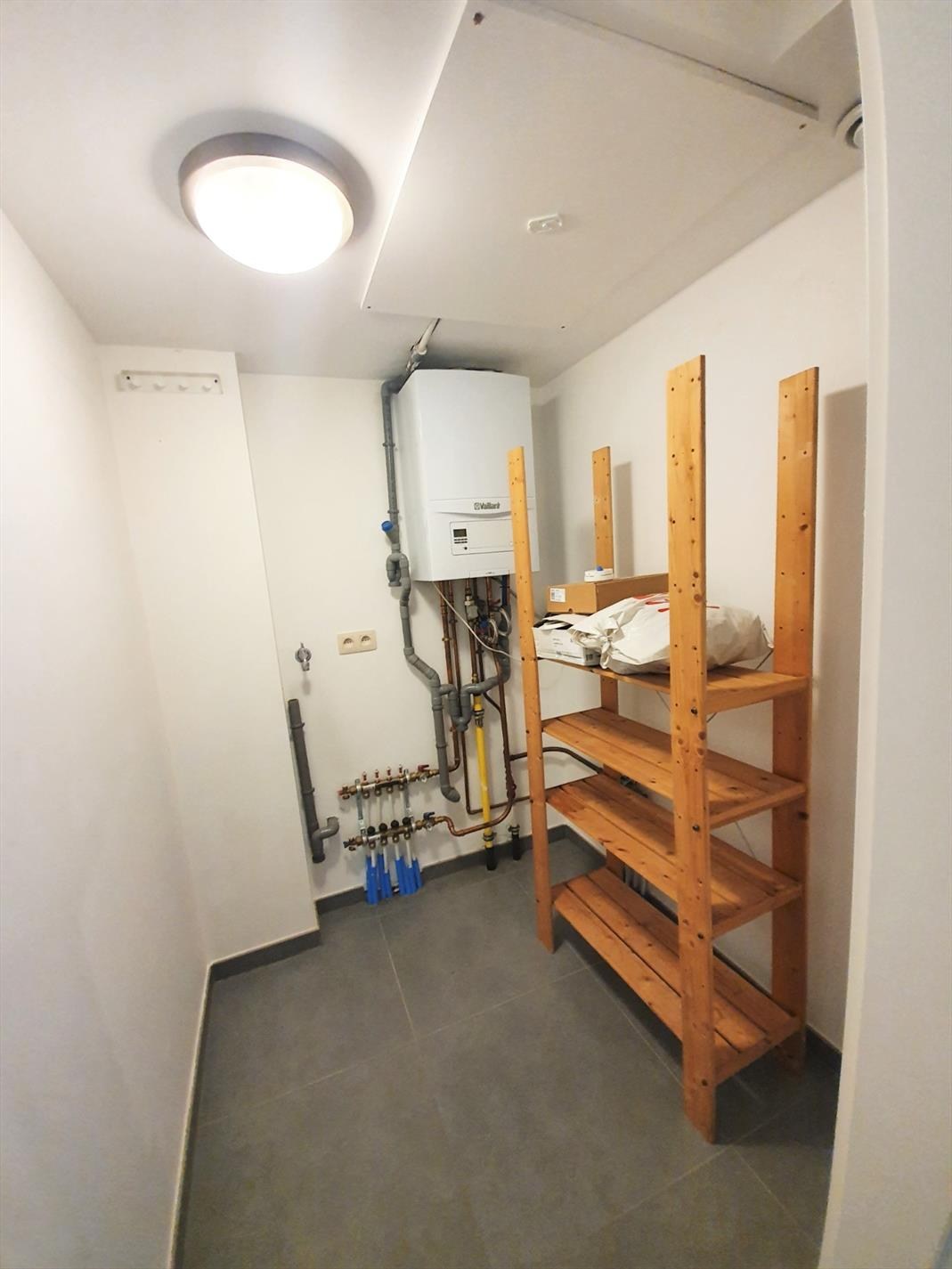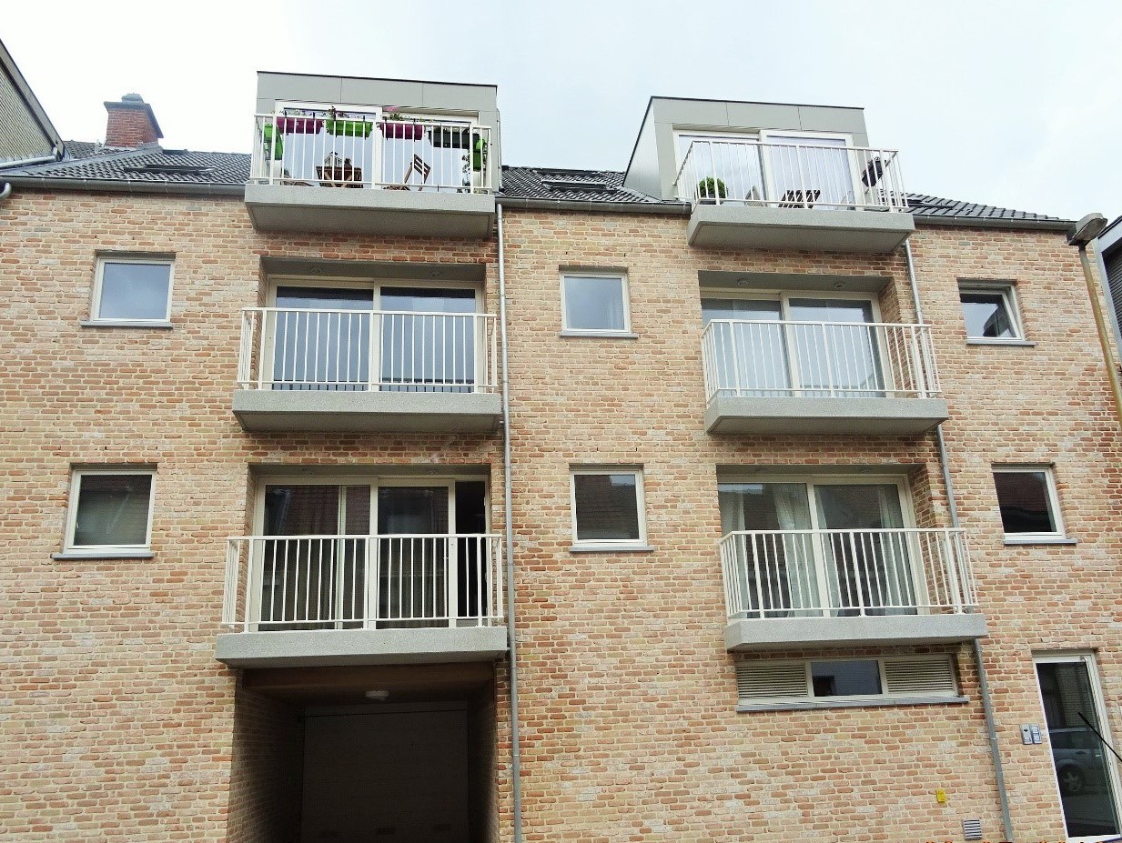 voorzien van een lichte leefruimte vooraan met balkon & open keuken met "Smeg" keukentoestellen (o.a. ijskast, keramische kookplaat, dampkap, combi-microgolfoven, afwasmachine), een aparte wasplaats, een badkamer met douche/toilet en wastafel, een aparte slaapkamer. Op het gelijkvloers bevindt zich verder nog een overdekte privé-parking met automatische inrijpoort. De overdekte autostaanplaats (vooraan rechts naast de inrit) zit bij het app. inbegrepen. Achteraan het gebouw situeert zich een vrije gemeenteparking (met parkeerkaart). Het appartement is uiterlijk INSTAPKLAAR vanaf 01/05/2026 !! HUURPRIJS APPARTEMENT met inbegrip van één overdekte autostaanplaats: 780€ + 45€ syndic = 825€/maand - VLOERVERWARMING OP GAS = zéér laag verbruik!! - EPC-score: 86 kWh/m² - A-score !